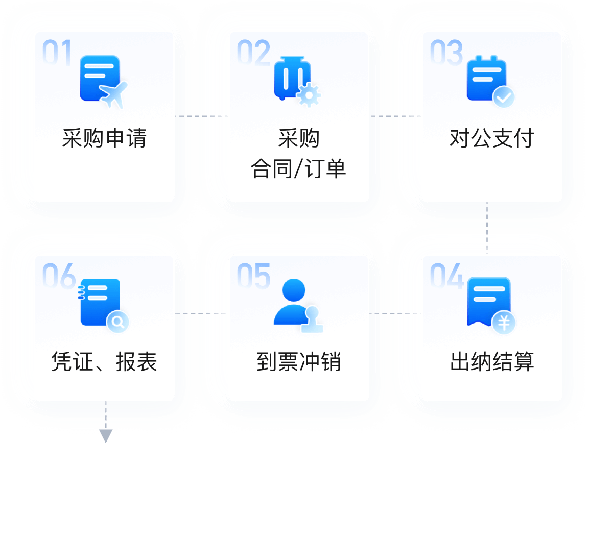 实时支付台账、效率/费用报表;对公预付、先票后款、部分到票;混合/自动导出支付、支付拆分退回