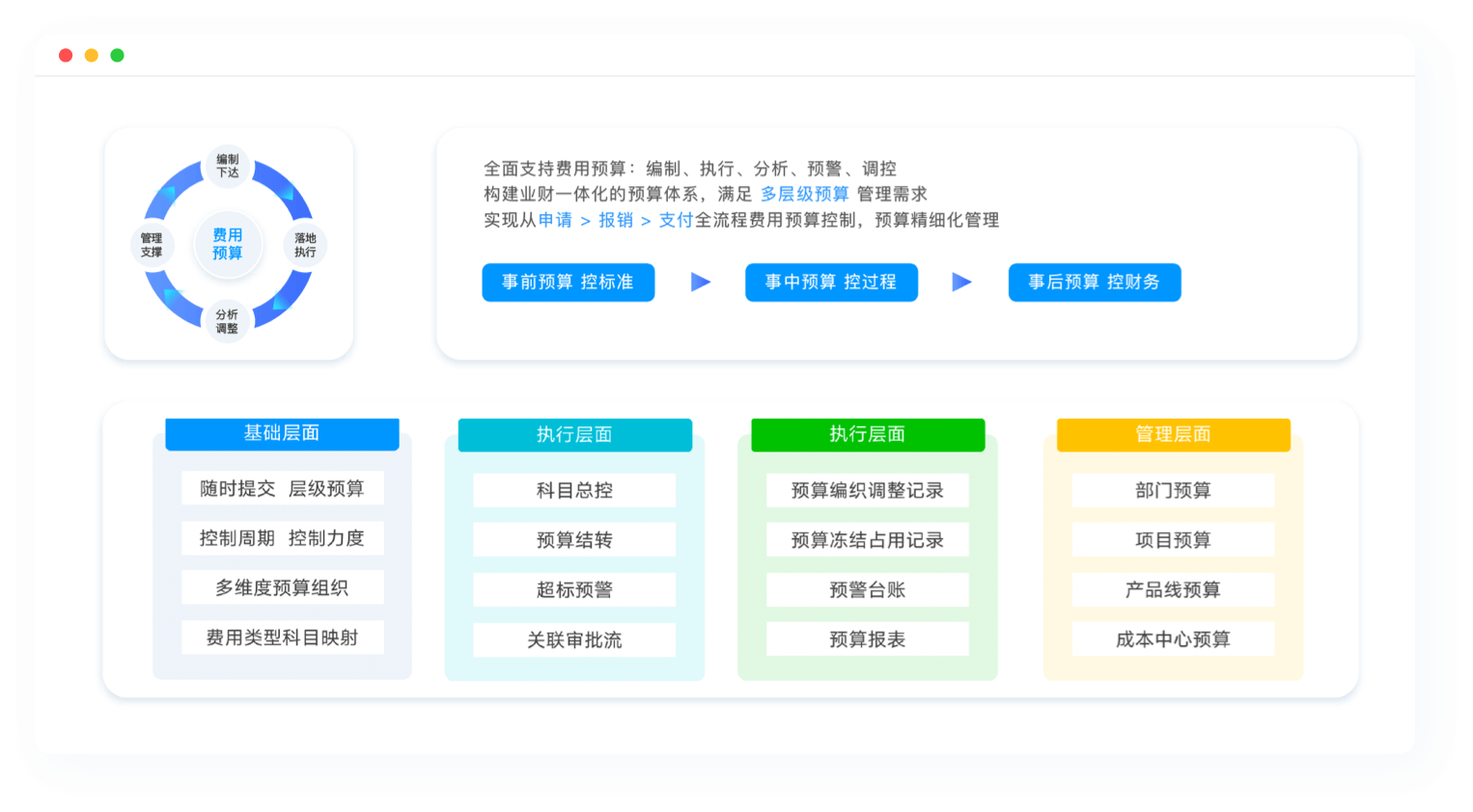 针对企业对公大额的费用支出,从四个方面进行对公费用的全生命周期管理,实现对公报账数字化