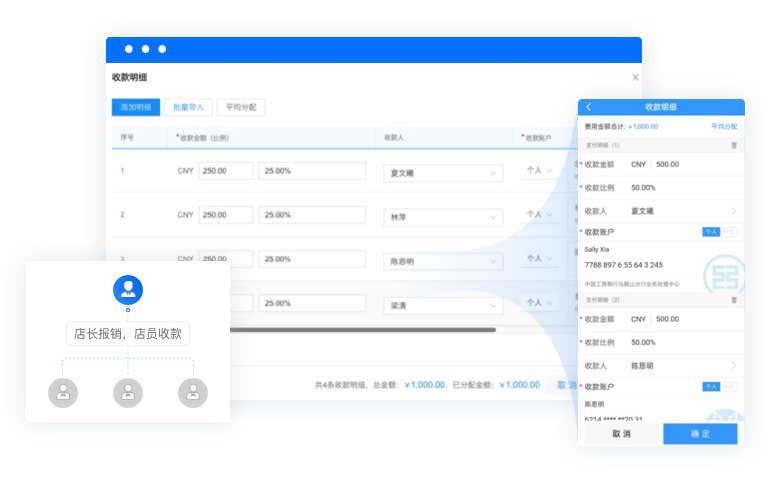 连锁门店人员流动较大,需要专人统一报销,实现集团管控,多组织门店内精细化管理模式,解决人员流动带来的报销问题。