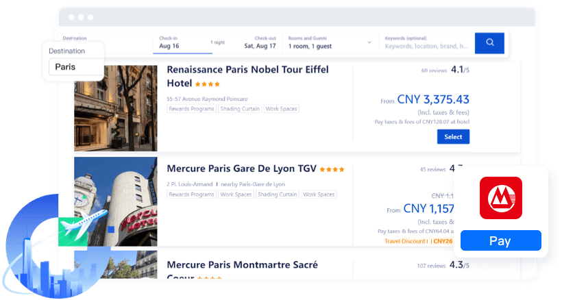 对接携程商旅、Trip.Biz、阿里商旅等全量主流TMC平台和精选差旅服务商,为企业提供全球机票、酒店等差旅资源预订服务,覆盖境外差旅全场景