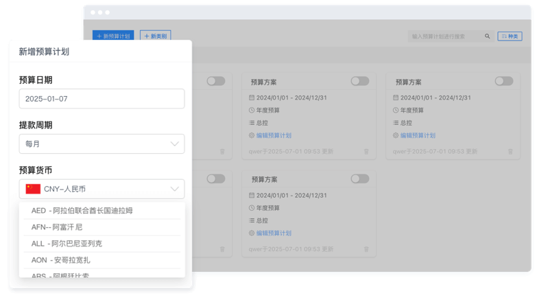 预算币种“灵活设”
